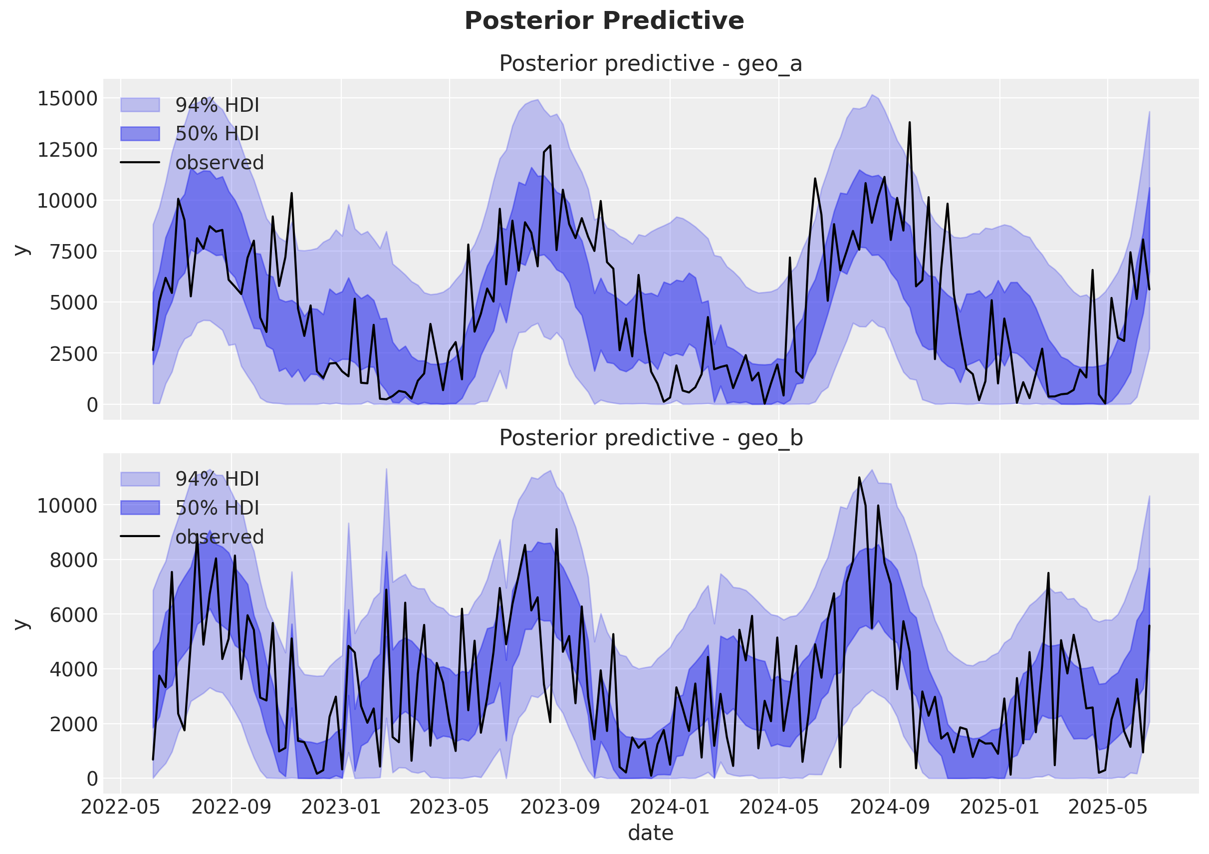 This custom specification highlights how to combine PyMC-Marketing components and custom PyMC structure: