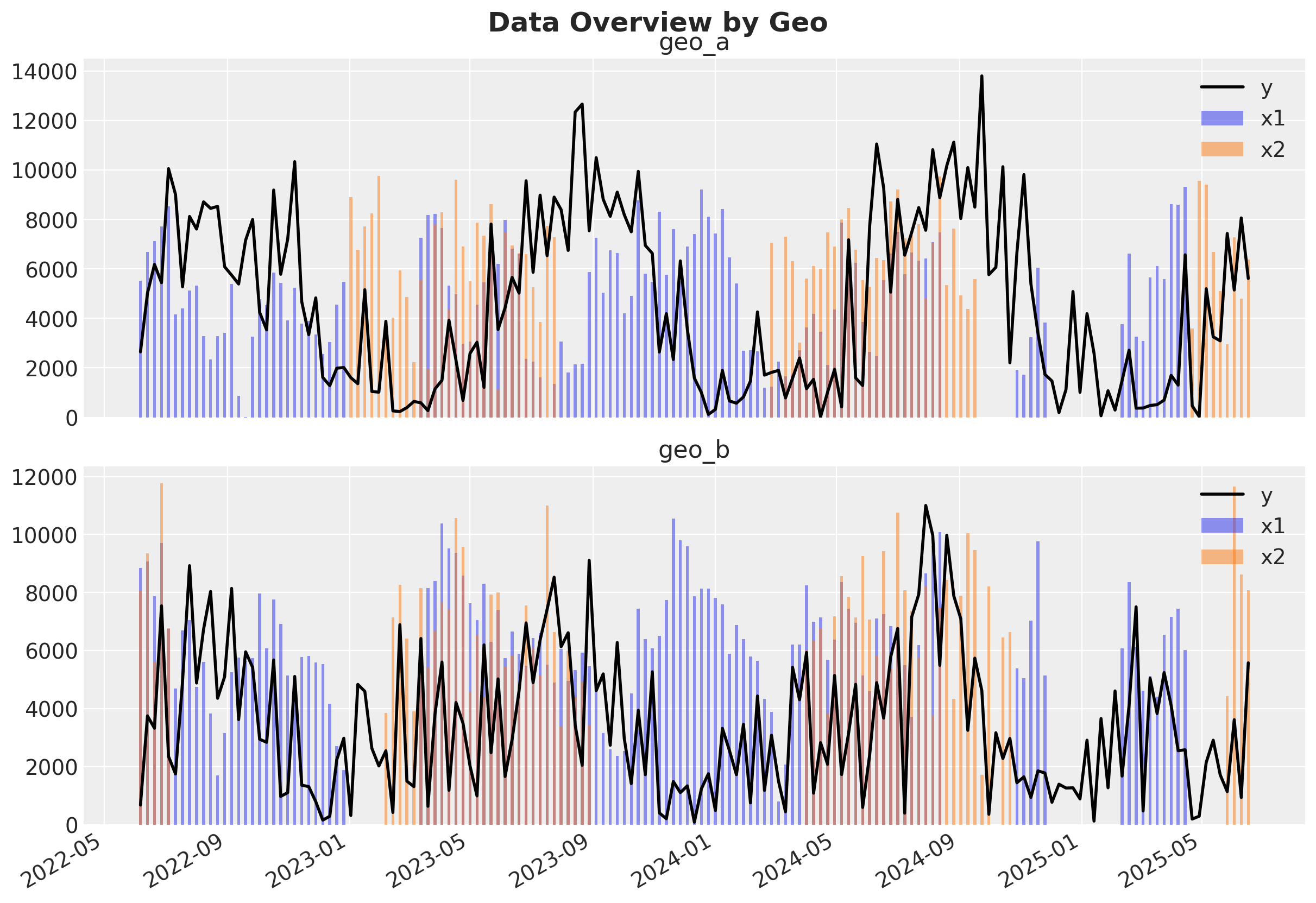 fig.suptitle("Data Overview by Geo", y=1.02, fontsize=18, fontweight="bold");