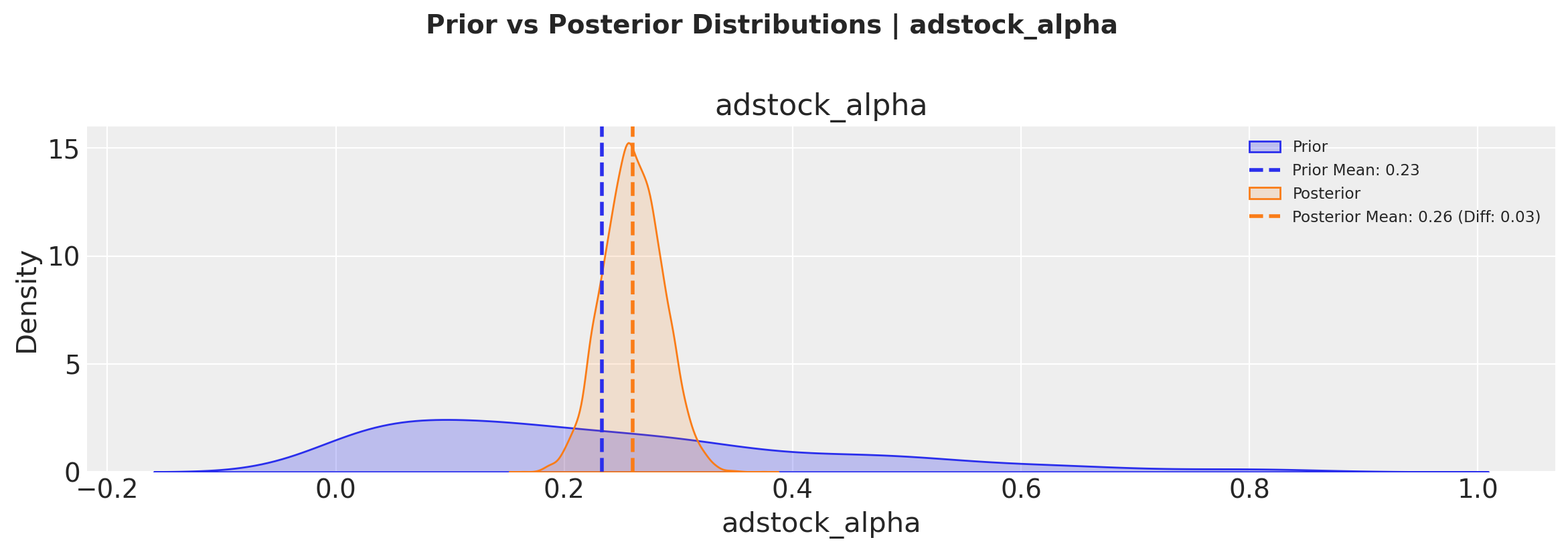 We can also visualize how our prior beliefs compare to the posterior distributions using the plot_prior_vs_posterior method: