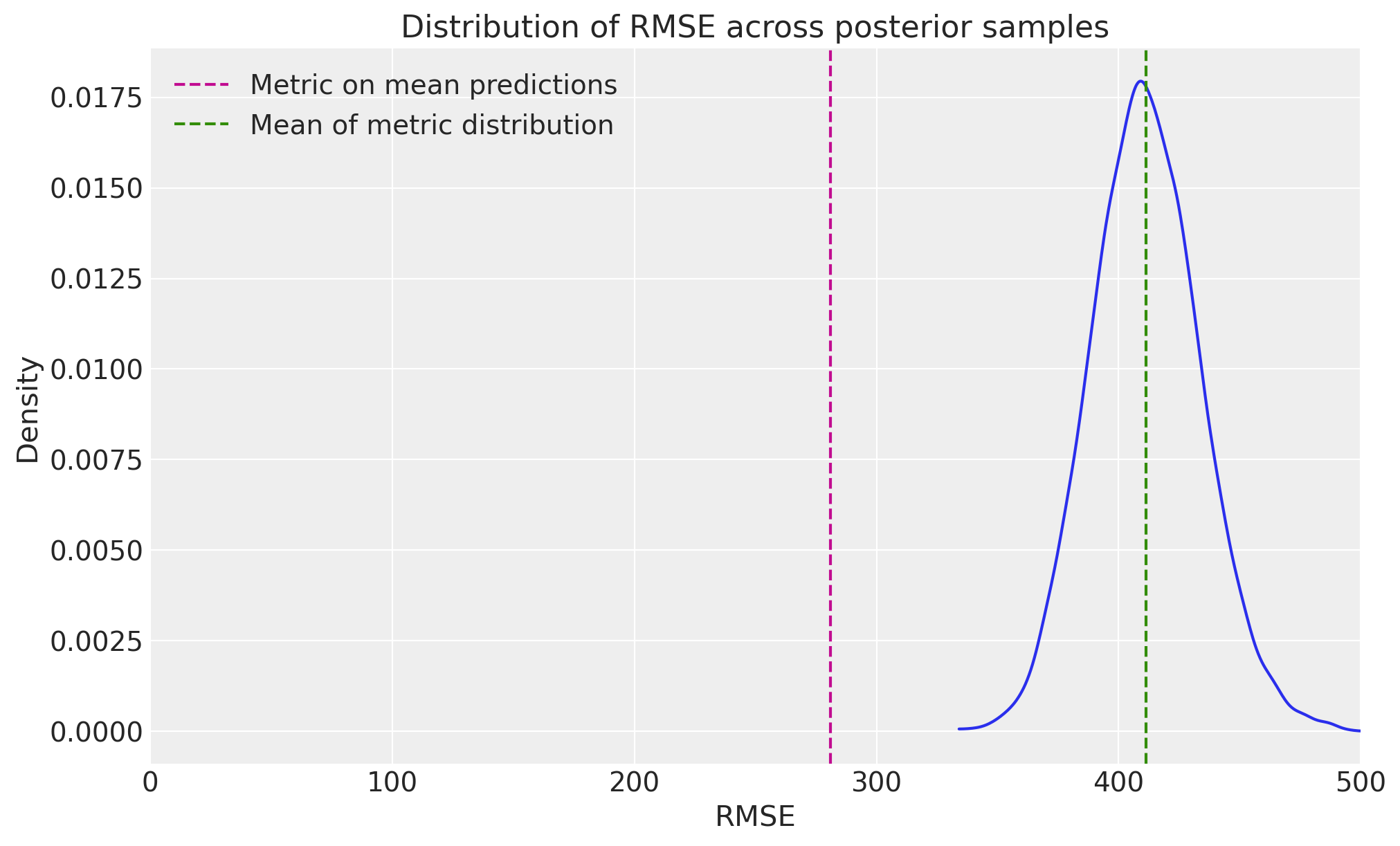 ax.axvline(naive_rmse, color="C3", linestyle="--", label="Metric on mean predictions")